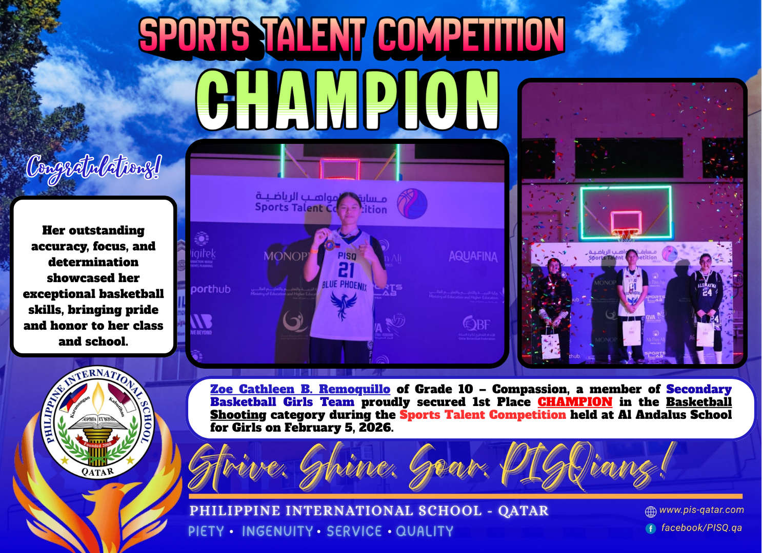 is a private educational institution established since 2000. Grounded by its commitment to serve the children of Overseas Filipino Workers (OFW), PISQ offers complete K-12 basic educational package from kindergarten to senior high school.